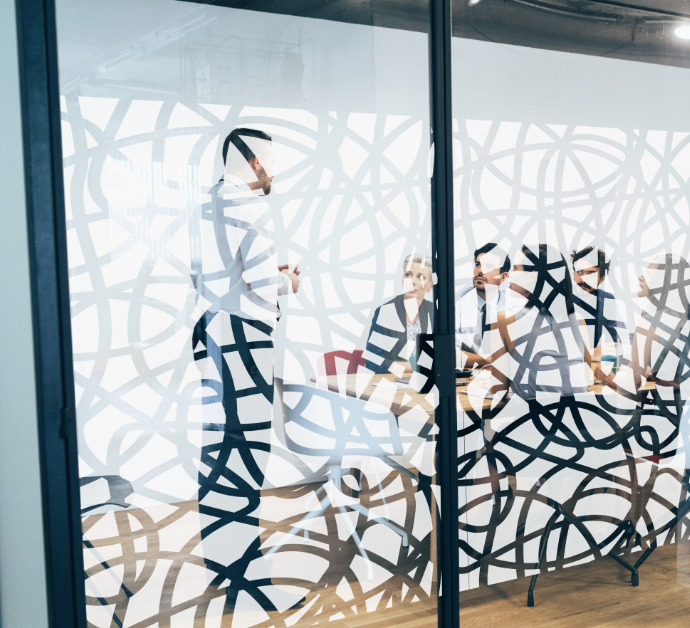 Ce design confère au vitrage une touche graphique et contemporaine, tout en préservant l’intimité dans les espaces comme les cloisons vitrées, les bureaux ou les zones de réunion.