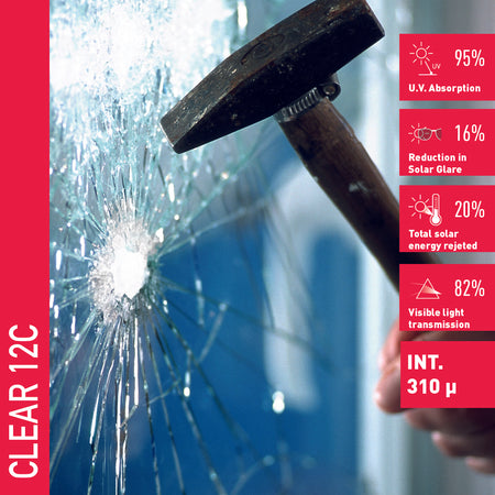Le Clear 12 C est un film transparent de sécurité 300 microns, spécialement conçu pour offrir une protection maximale contre les chocs, les intrusions et les explosions. Il allie discrétion et robustesse, tout en laissant passer un maximum de lumière.