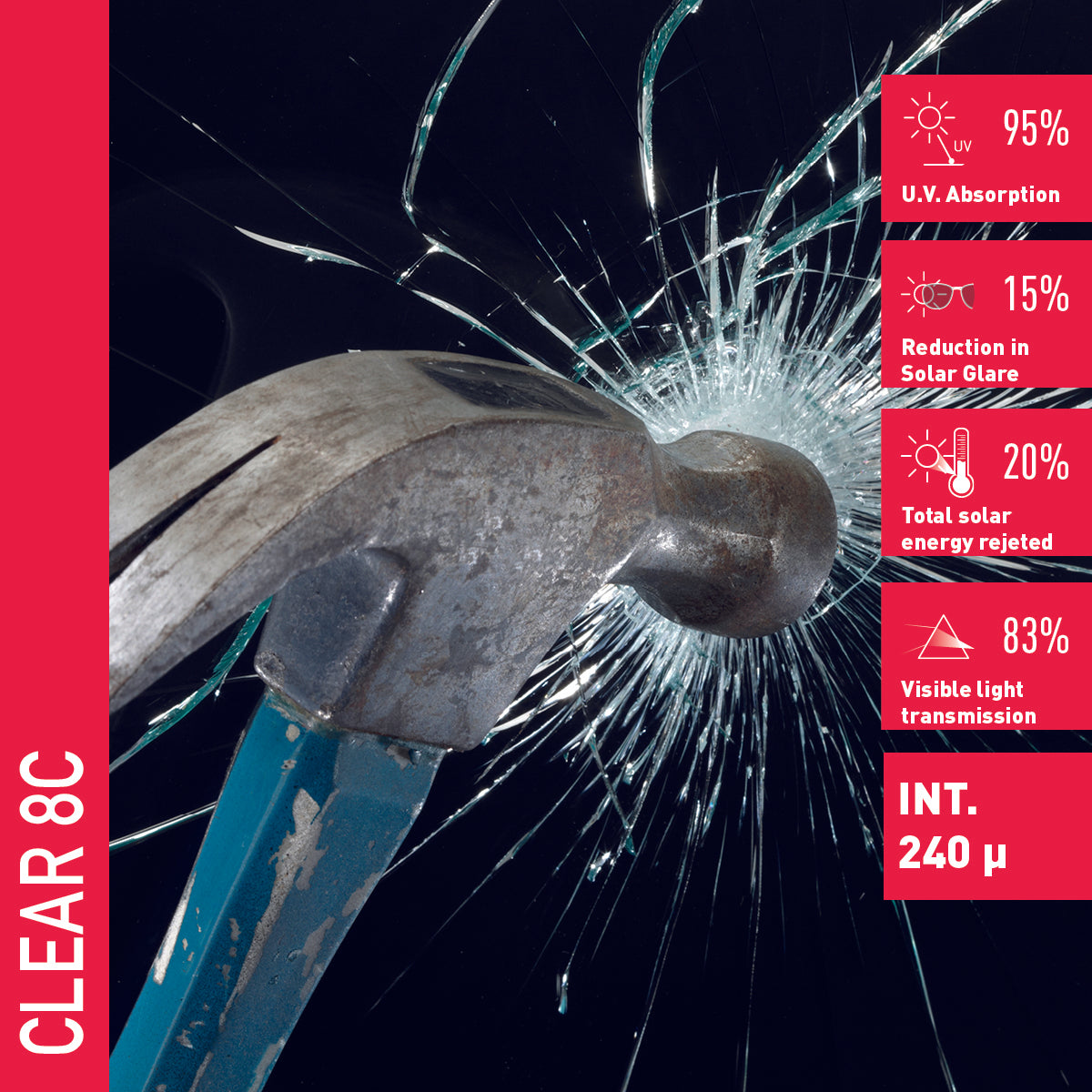 Le Clear 8 C est un film transparent de sécurité 200 microns, conçu pour renforcer les vitrages contre les bris, les chocs et les intrusions. Il offre une protection invisible tout en préservant la luminosité des espaces.
