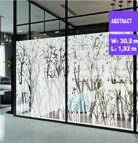 Le film Floral présente un motif “printanier” très végétal, avec des formes florales et boisées qui apportent une atmosphère douce, naturelle et élégante aux vitrages (cloisons, fenêtres, parois intérieures).