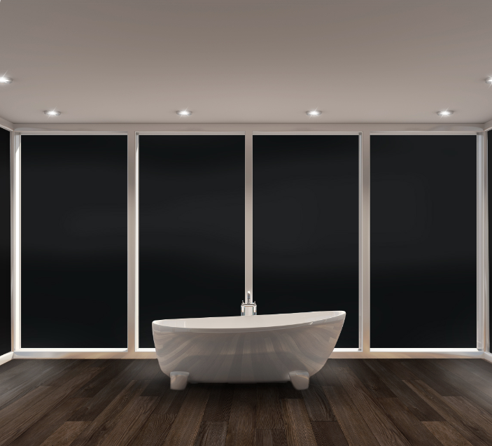 Le film Black Opaque (noir totalement occultant) de Solar Screen est conçu pour offrir une intimité complète : il bloque quasiment toute la lumière, des deux côtés du vitrage. Il est particulièrement adapté quand on veut dissimuler totalement une pièce, un stock, un dépôt, ou tout espace où la lumière et la visibilité doivent être coupées.