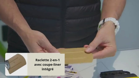Posez et coupez le dos sans changer d’outil (raclette+ cutter de liner).