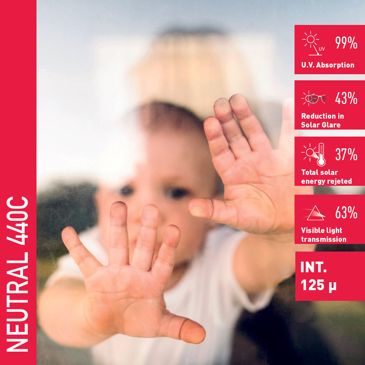 Le Neutral 440 C est un film solaire intérieur au rendu neutre et peu réfléchissant, idéal pour réduire la chaleur et protéger des UV tout en préservant l’esthétique naturelle du vitrage. Parfait pour les espaces professionnels ou résidentiels recherchant efficacité et discrétion.